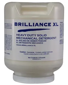 Brilliant Chemical's Brilliance XL 8 lb. solid dish machine detergent is a must-have for your high-temp dish machine. This economical product is a blend of several sodium-based chemicals and can be used to wash even the dirtiest soil loads. This product is designed for probed dispensing into your dishwasher, and a little goes a long way. Brilliance XL dish machine detergent is the perfect choice for any foodservice establishment.